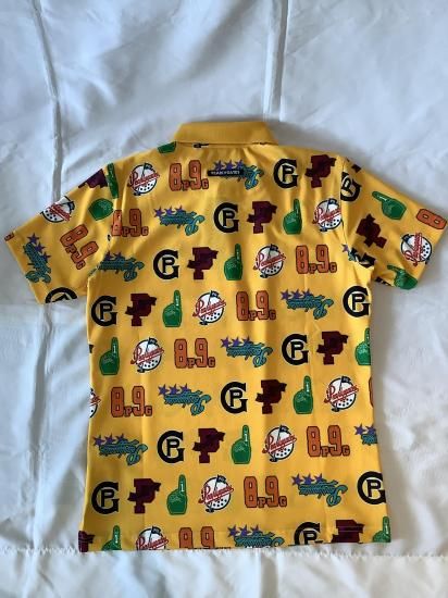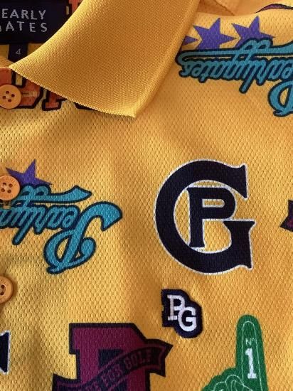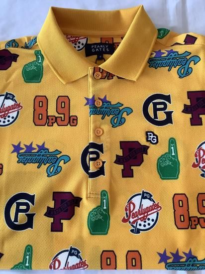 【パーリーゲイツ】POPベースボール柄 半袖ポロシャツ イエロー サイズ 4、5、6