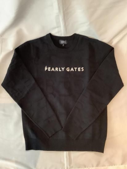 【パーリーゲイツ】ロゴ総柄クルーネックニット ネイビー サイズ 2、6