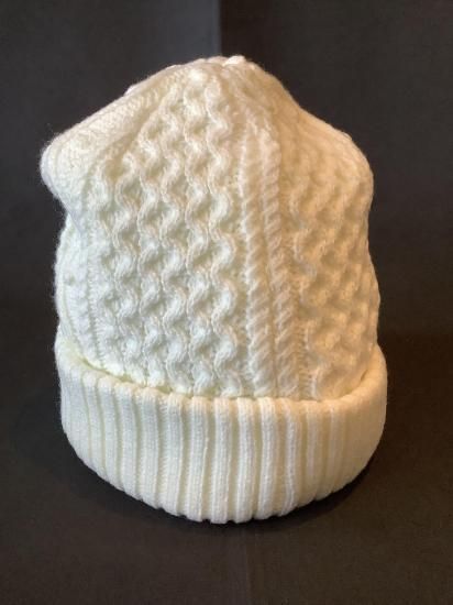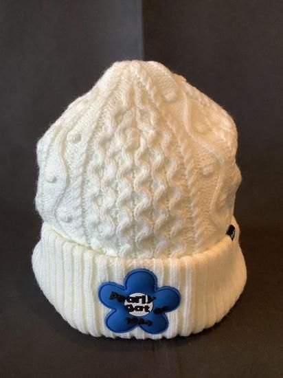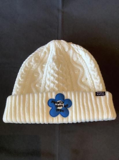 【パーリーゲイツ】フラワーワッペンアラン編み ニット帽 ホワイト