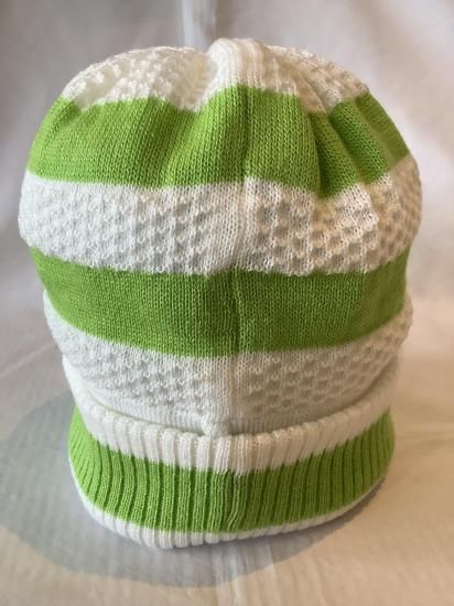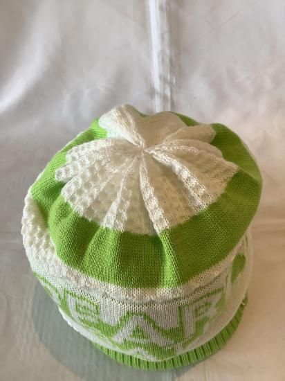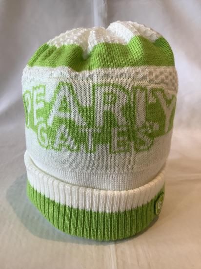 【パーリーゲイツ】ボーダー柄ロゴニット帽 黄緑