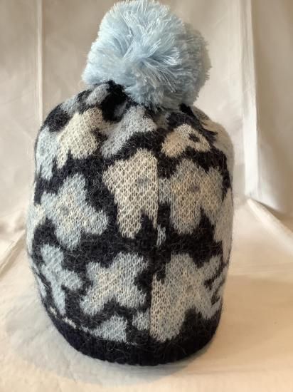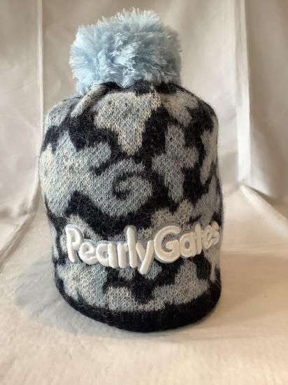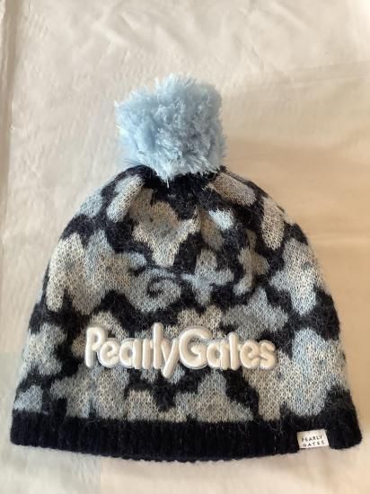 【パーリーゲイツ】POP花柄梵天付きニット帽 ネイビー