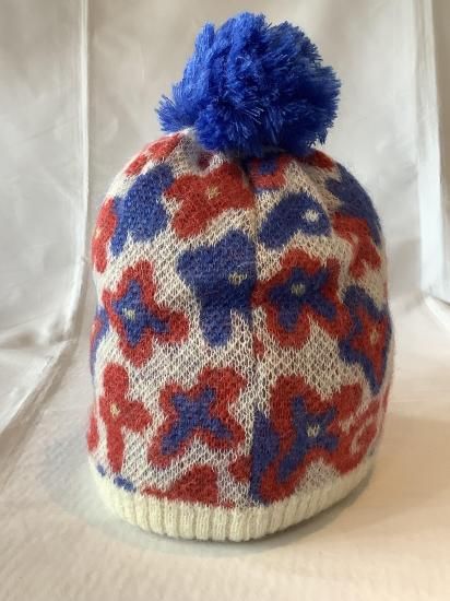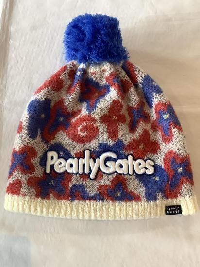 【パーリーゲイツ】POP花柄梵天付きニット帽 ネイビー